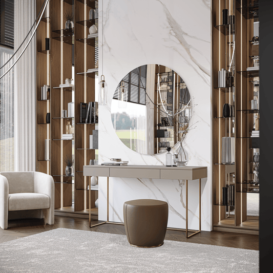 Pair your dressing table with matching mirrors and stools to create a complete vanity corner. Crafted with luxury yet affordable quality, these pieces are designed for both practicality and style.