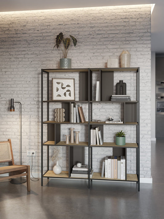 Nuestras estanterías están diseñadas para mucho más que simplemente almacenar cosas: también permiten exhibir decoración, fotos familiares y accesorios, lo que las convierte en adiciones versátiles para cualquier espacio de estar u oficina.