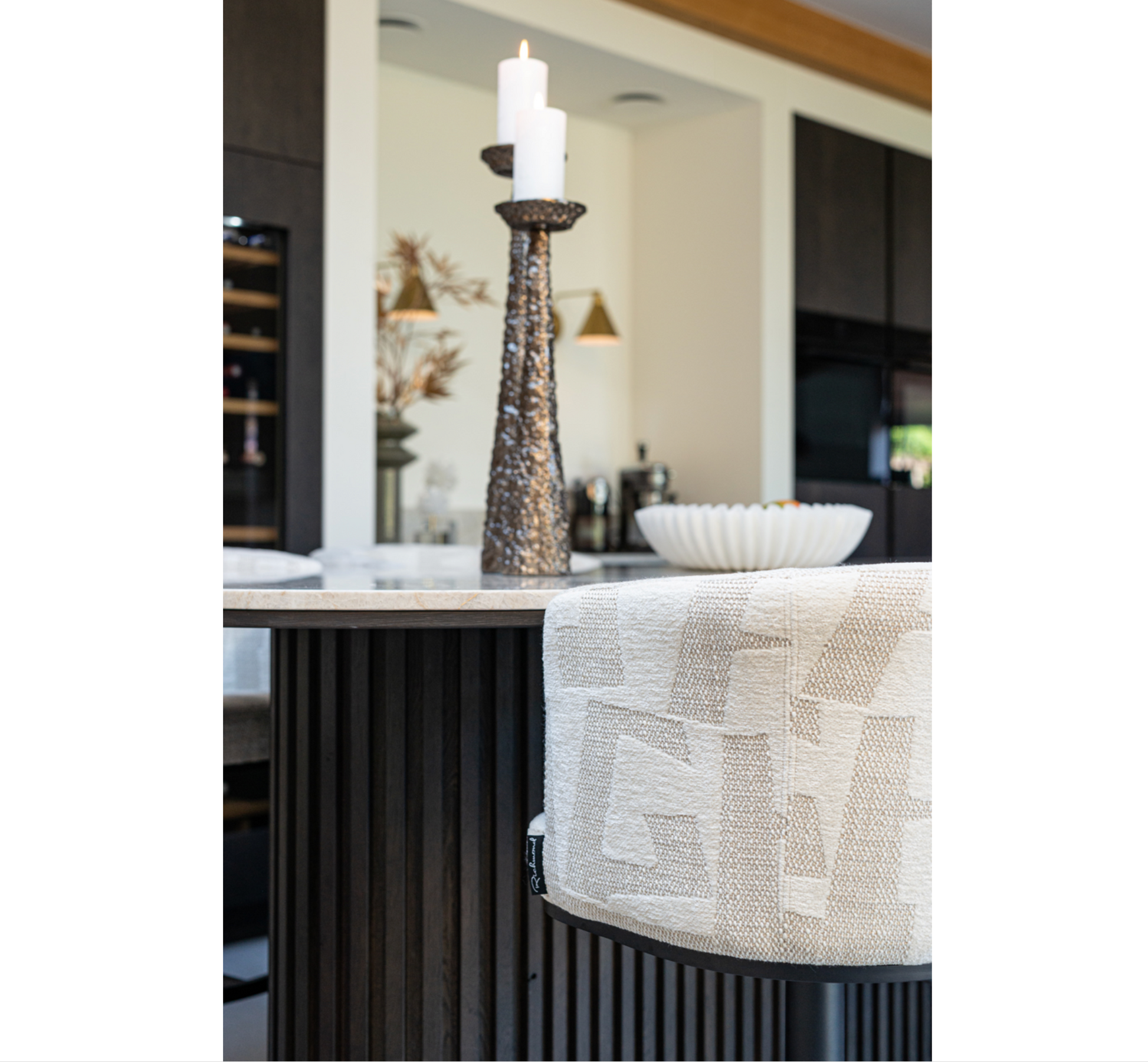 Tissu de couleur blanche avec pieds en bronze