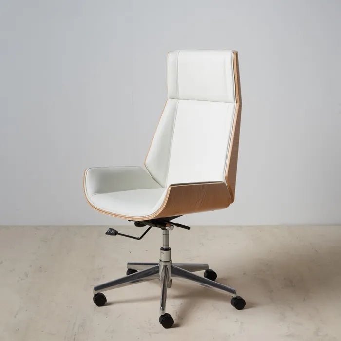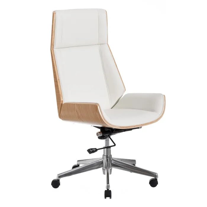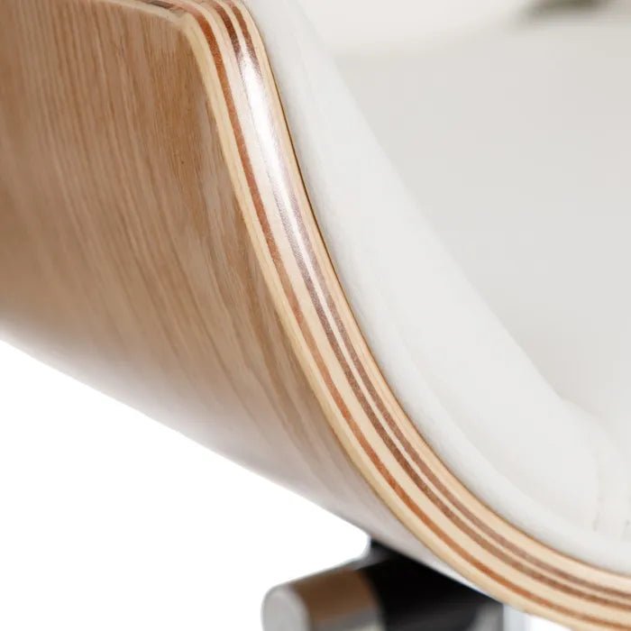 Material: 100% imitation leather polyurethane. Walnut conglomerate wood back. Legs: chromed iron Rotating Filling: foam Density: 30kg/m2 Seat height: minimum 43 - maximum 51cm. Maximum height reached: 116.5cm. Leg height: 36cm. Seat depth: 50cm. Seat width: 56.5cm. Complies with EN1335 regulations