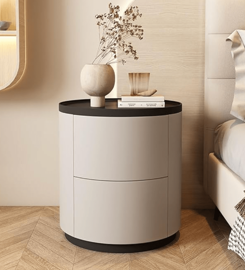 Elegant and functional, the Aster Bedside Table brings contemporary design to your bedroom with its smooth circular form and clean lines. Crafted with two spacious drawers for discreet storage, this modern nightstand keeps your essentials organized while elevating your space. Its rounded silhouette softens the room’s look, making it perfect for minimalist, modern, or luxury interiors.