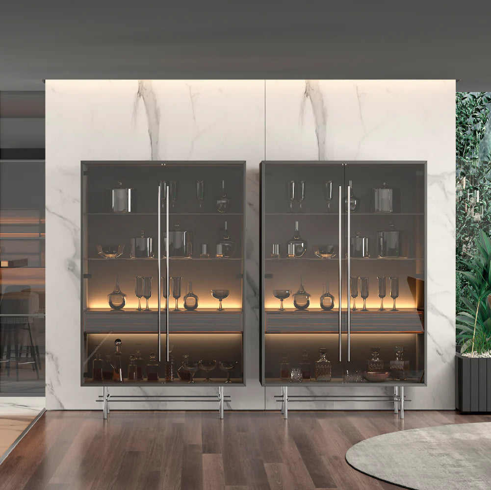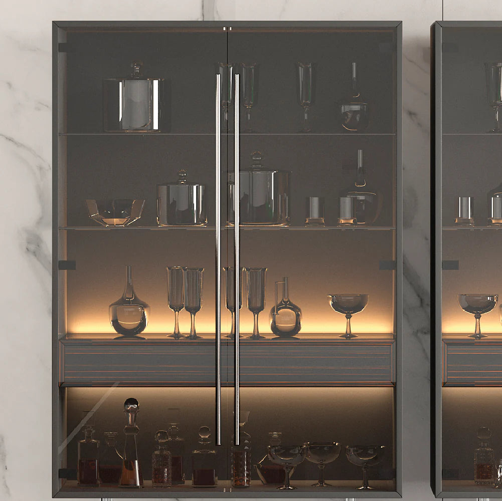 Ellender 2 tall sideboard combines sculptural curves and integrated lighting to showcase collections with understated elegance. Crafted with premium wood finishes that highlight natural grain, this contemporary piece features generous shelving and thoughtfully designed compartments. The built-in illumination transforms displays into focal points while establishing a refined, welcoming atmosphere. Perfect for living rooms and bar spaces where curated presentation meets modern functionality.