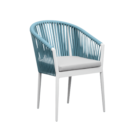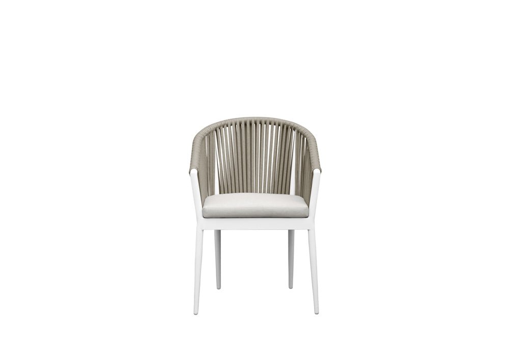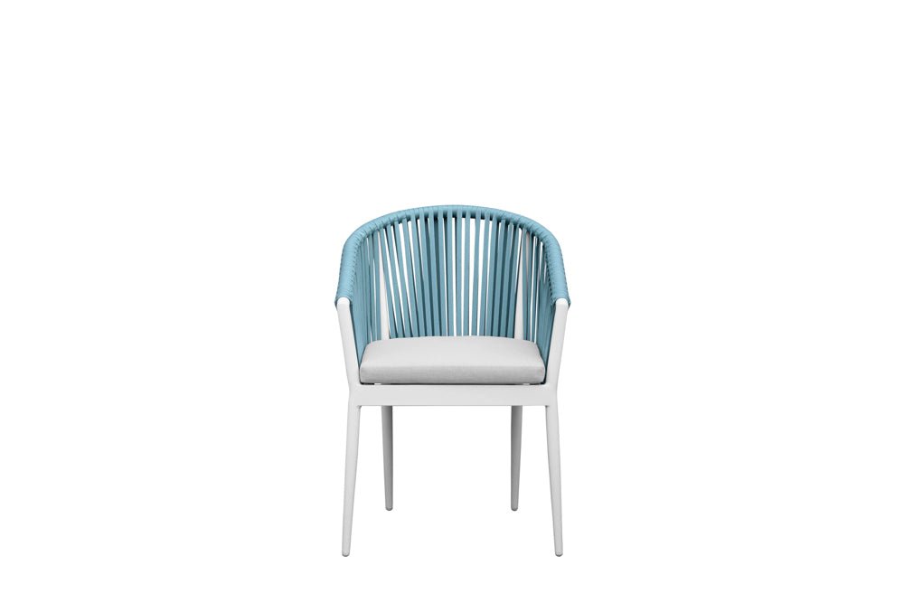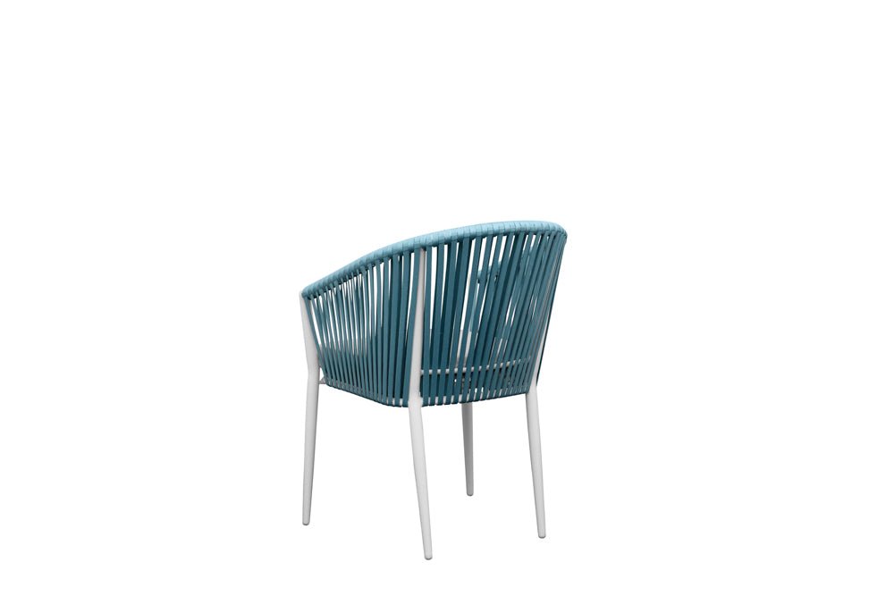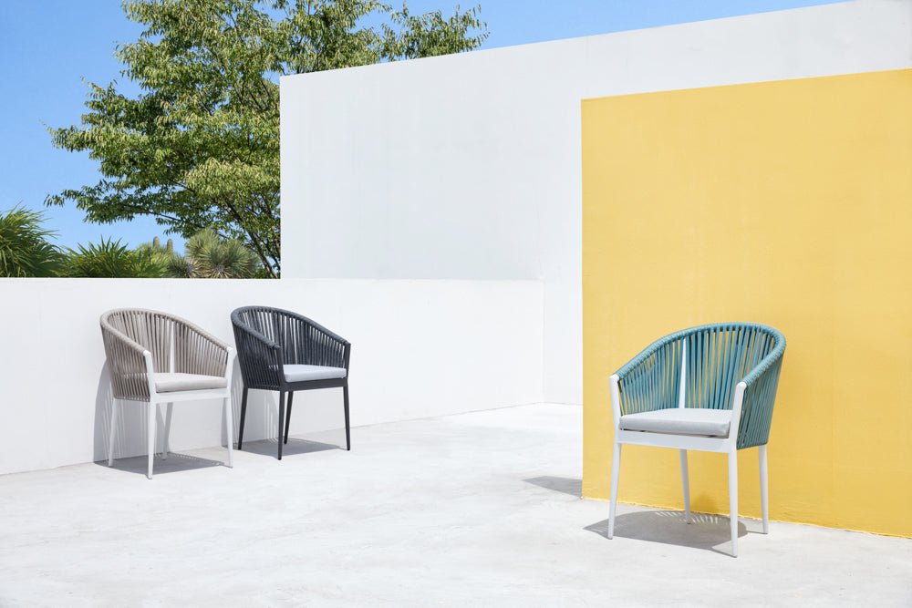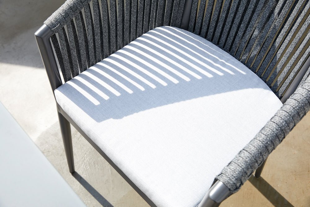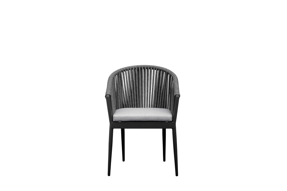 Sillon Ukiah. Estructura en aluminio lacado en antracita combinado con cuerda plana en olefina antracita .Cojin de asiento de 5cm color gris medio. Apilable